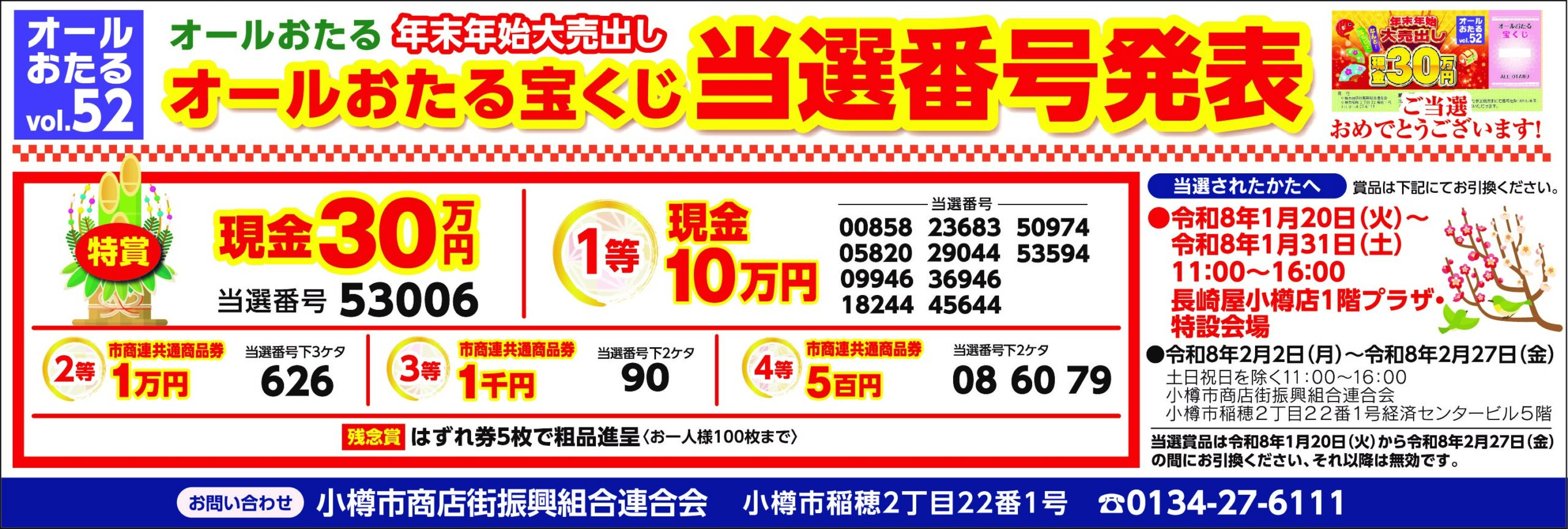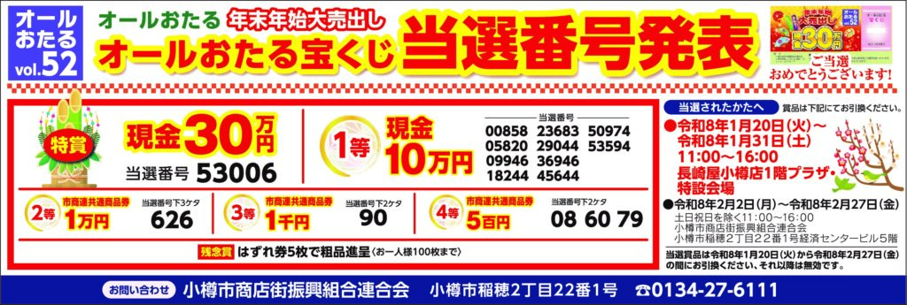 【外部情報】オールおたる宝くじ当選番号発表(vol.52)