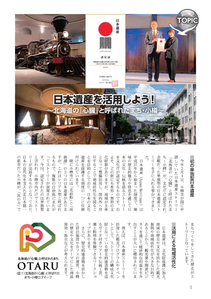 2025年5月2日 / 最終更新日 : 2025年5月2日 新着情報 日本遺産を活用しよう!~北海道の『心臓』と呼ばれたまち・小樽~(会報 TOPIC) 日本遺産を活用しよう!~北海道の『心臓』と呼ばれたまち・小樽~ 1 2 FacebooktwitterCopy