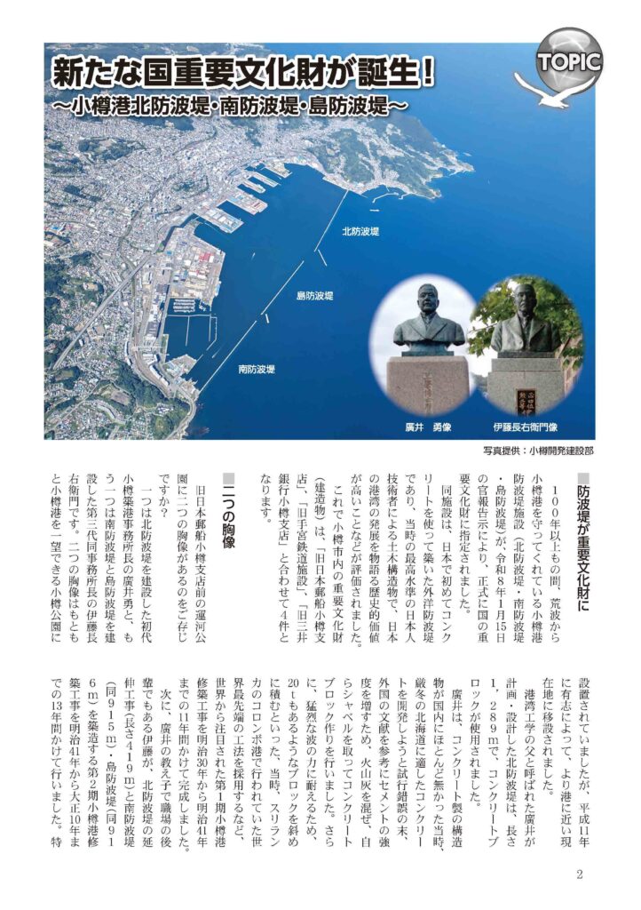新たな国重要文化財が誕生!~小樽港北防波堤・南防波堤・島防波堤~(会報 TOPIC)